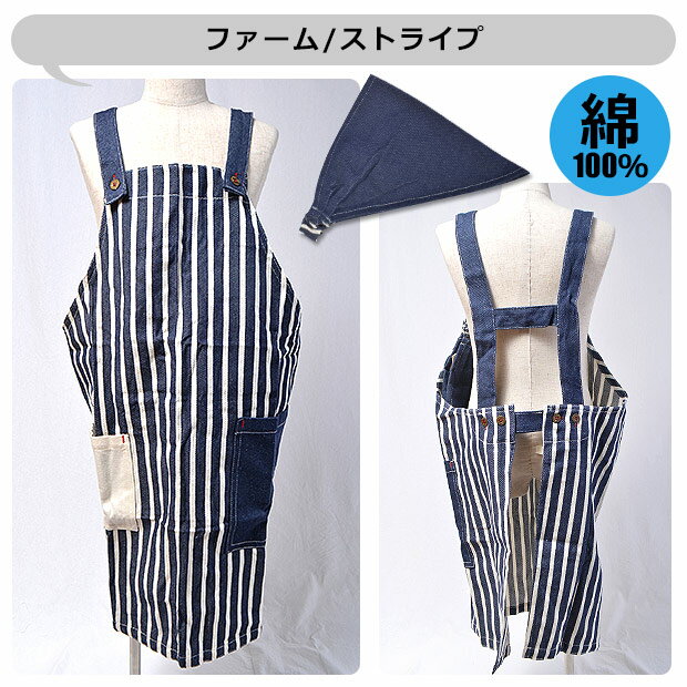 ●サイズ: キッズLサイズ【130-140cm対応】 ●カラー:全5色 730014・ファーム/ストライプ 730007・ファーム/ネイビー 714878・ストライプスタイル/ネイ 714816・デニムスタイル/ネイビ- 688506・カフェ/ホワイト ●素材:綿100% ※メール便に限り送料無料♪